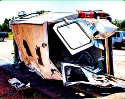 O motorista da ambulância (placas de Colíder) ficou ferido, com suspeita de fratura em uma perna