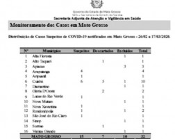 por - Sebastião Amorim - A Secretaria Estadual de Saúde de Mato Grosso divulgou hoje (20/03) “Nota Informativa 16” detalhando o nome dos municípios, bem como,...